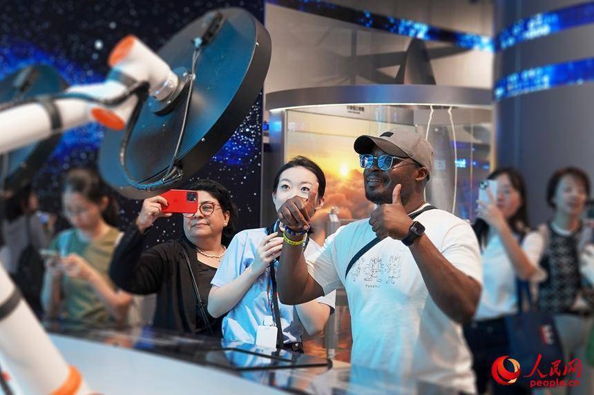 艾里士(前排右一)在深圳科学技术馆与AI小精灵互动。人民网 王星摄