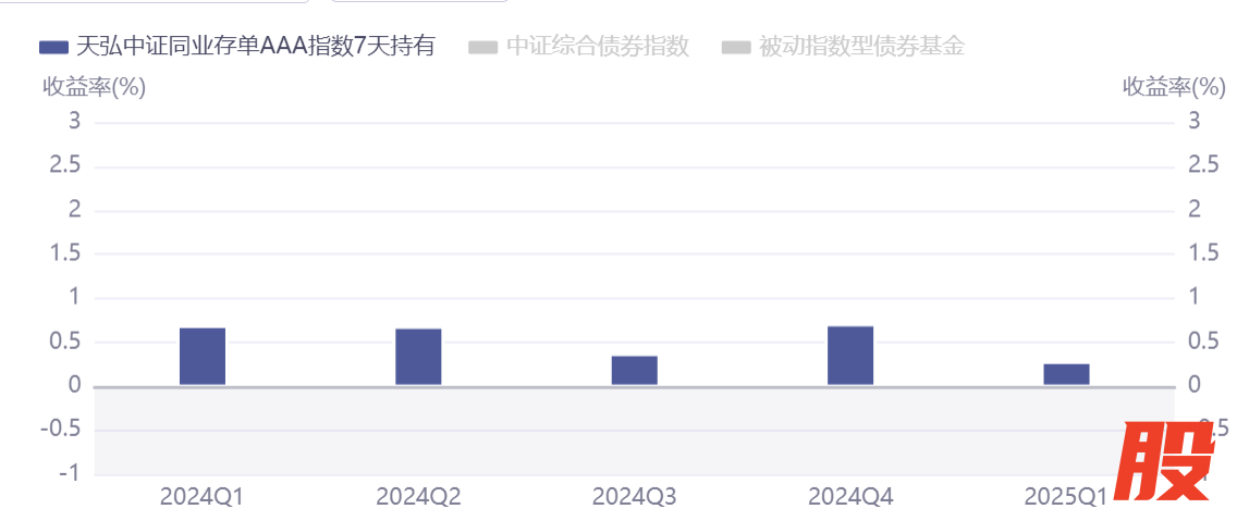 天弘中证同业存单AAA指数7天持有期(代码:017423),成立以来年年正收益。2023年2.18%,2024年2.43%,年化回报2.19%,成立以来5.37%。(产品生效日为2022年12月20日,业绩数据来源基金定期报告。)