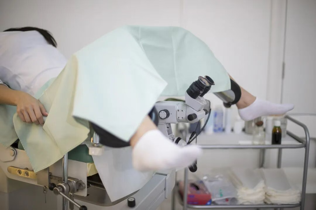 等待做妇科检查的患者,需要张开双腿,以便医护人员使用鸭嘴钳进行检查。(图/视觉中国)